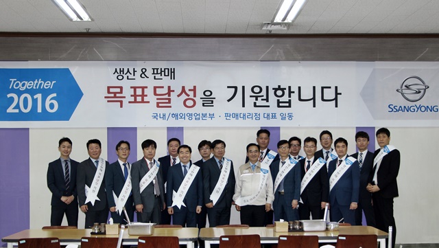 지난 5일 쌍용자동차 국내영업본부장 송영한 전무, 대리점협의회 김종권 회장(광교대리점)을 비롯한 쌍용자동차 국내∙해외영업본부 및 대리점협의회 관계자 40명은 평택공장 및 창원공장, 서울서비스센터를 방문해 현장 직원들에게 격려와 감사의 뜻을 담은 소정의 선물을 전달하고, 올해 생산 목표 및 판매 목표 달성을 함께 기원했다.