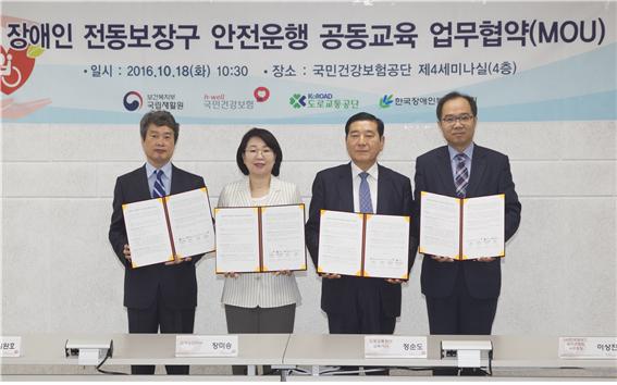 [시사뉴스피플=이남진 기자] 도로교통공단은 18일 국민건강보험공단, 국립재활원, 한국장애인복지관 협회와 ‘장애인 전동보장구 안전교육’ 업무협약을 체결했다.