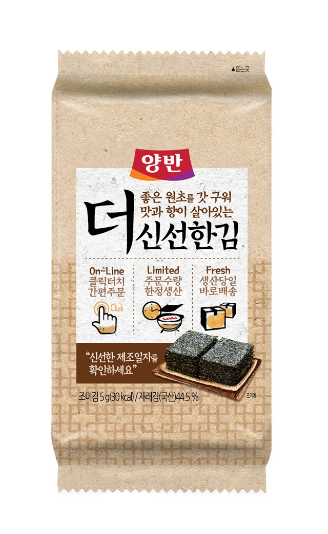 ‘양반 더 신선한 김’은 온라인 주문 수량만 당일 생산해 발송하기 때문에, 소비자가 최적의 신선도로 받아볼 수 있다.
