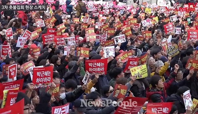 [시사뉴스피플=전은지 기자] 9일 탄핵안 표결을 앞두고 광화문 광장이 매일 촛불집회로 뜨거울 전망이다.
