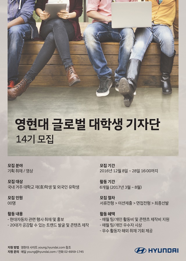 지원은 현대자동차 대표 대학생 사이트 영현대(http://young.hyundai.com)를 통해 가능하며, 자세한 모집 요강도 확인 할 수 있다.