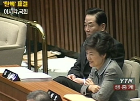 9일 박근혜 대통령에 대한 탄핵소추안 국회 표결을 하루 앞둔 현재, 12년 전 노 전 대통령의 탄핵안이 국회 표결에 부쳐지던 당시 탄핵이 통과되는 장면을 지켜보며 즐거운 듯 미소 짓는 박 대통령의 모습이 재조명 받고 있다. 해당 영상을 본 시민들은 온라인 커뮤니티와 소셜미디어 등을 통해 ‘치가 떨린다’, ‘저렇게 웃던 사람이 12년이 흐른 지금 온 대한민국을 분노로 몰아넣었다’는 등 울분을 터뜨리고 있다.