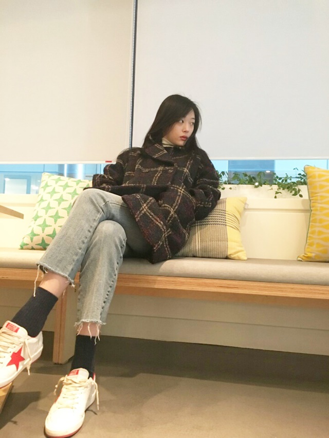 설리는 타탄체크무늬 더블코트를 캐주얼한 아이템들과 함께 매치해 꾸민 듯 안 꾸민 듯한 스타일리시한 패션을 완성했다. 박시한 아우터를 빈티지한 컷아웃 데님 팬츠, 레드 컬러가 포인트로 더해진 스포티한 스니커즈와 자연스럽게 어우러지게 해, 캐주얼과 클래식이 공존하는 매력 있는 룩을 연출했다. 전체적으로 편안하면서도 멋스러운 놈코어 룩을 최신 트렌드에 맞춰 새롭게 재해석해, 남녀 불문하고 쉽게 활용할 수 있는 위트 있는 스타일링 팁을 보여주고 있다.