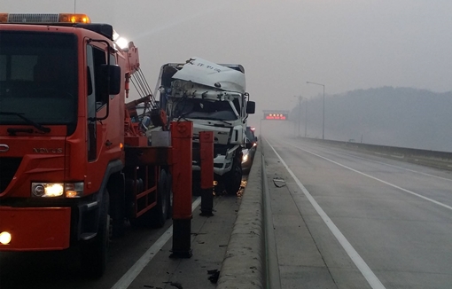 9일 오전 6시7분께 경기도 여주시 능서면 중부내륙고속도로에서 김모씨(51)가 몰던 3.2t 트럭이 앞서 일어난 사고를 수습하던 A경위(54)를 덮쳤다.