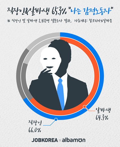 15일 취업포털 잡코리아에 따르면, 최근 아르바이트 포털 알바몬과 공동으로 ‘감정노동자’를 주제로 설문조사를 실시한 결과 이 같이 나타났다.