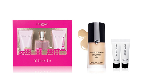 조르지오 아르마니는 파운데이션 구입 시 프라이머를 함께 증정해 완벽한 피부결을 연출할 수 있도록 한 ‘래스팅 실크 UV 파운데이션 세트’를 선보였다. ‘래스팅 실크 UV 파운데이션’은 피부에 밀착돼 산뜻한 피부를 유지해 주는 제품으로, 고농축 수분 에센스와 미세한 파우더 입자 함유로 촉촉하고 자연스럽게 윤기 나는 피부를 연출할 수 있는 것이 특징이다. 함께 구성된 ‘UV 마스터 프라이머 모브’는 메이크업 지속력을 높여주는 것은 물론 크리스탈 펄이 함유돼 있어 피부 톤을 밝게 보정해주는 효과가 있다.