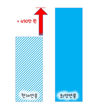 현재 이직을 준비하는 직장인이 이직 시 희망하는 연봉 인상금액은 평균 490만원으로 집계됐다. 현재 받는 연봉보다 약 490만 원 정도 더 받는다면 이직할 것이라 답한 것이다.