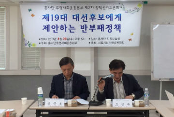 이어 현 대선후보들의 반부패 정책공약을 살펴보고 앞으로 차기정부가 투명사회를 위해 나아가야 할 방향을 모색하기 위한 자리로 마련되었다.