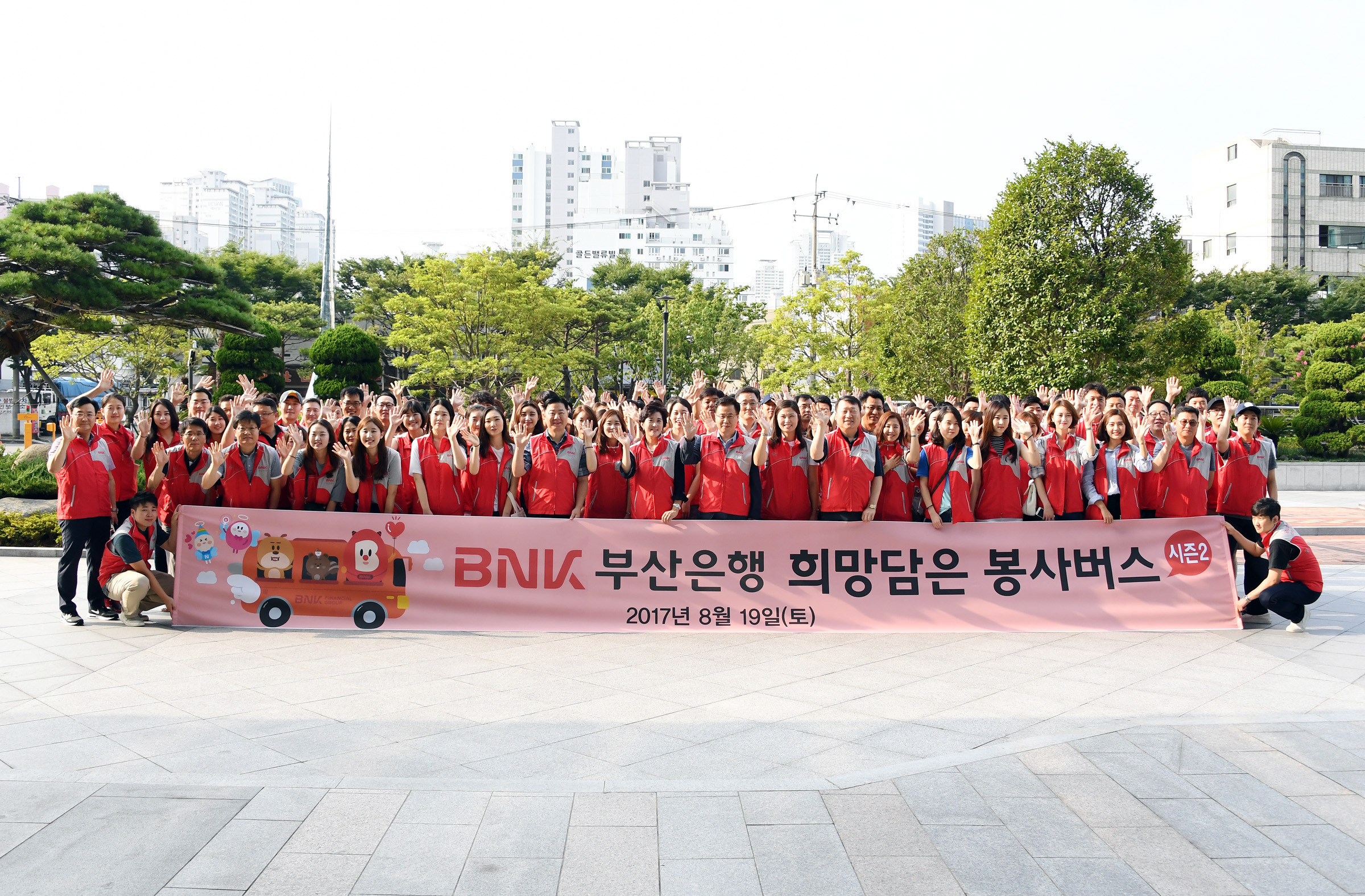 BNK금융그룹 부산은행이 창립 50주년을 맞아 이색 봉사활동인 ‘BNK부산은행 희망담은 봉사버스’ 활동을 지난 19일 실시했다고 밝혔다.