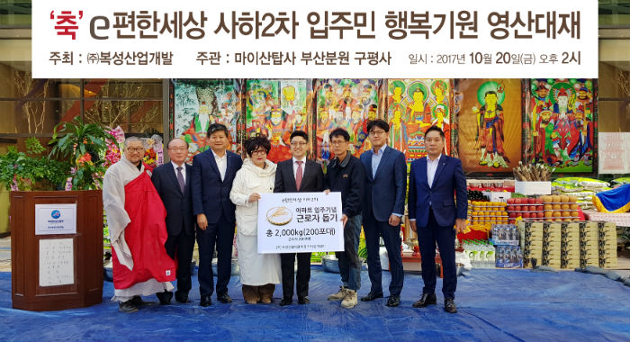(주)복성산업개발은 지난해 8월 31일에는 ‘e편한세상 사하1차 입주’를 환영하고, 입주민들의 안녕을 기원하는 ‘낙성식 영산대재 및 복성장학금 전달식’을 가진 바 있다.