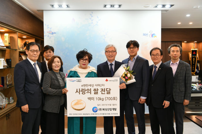 (주)복성산업개발은 지난 10월 20일 ‘e편한세상 사하2차 입주’를 맞아, 사하2차 APT 안전시공에 힘써온 근로자를 위한 사랑의 쌀을 전달했다. 연이어 11월 1일에는 사하구의 불우한 이웃을 위해 사랑의 쌀(10kg 700포)을 기탁했다.