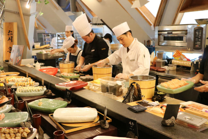 이들이 만드는 일식은 다양한 브랜딩을 통해 고객들의 입맛을 돋운다. 일식의 가장 기본인 스시는 ‘스시혼’ 코너에서 일본 셰프가 직접 만드는 본토의 맛을 느낄 수 있다. 활어시장에서 직거래를 통해 공수해온 것이라 더욱 신선하며, 다시마 숙성으로 깊고 건강한 맛을 표현한다.