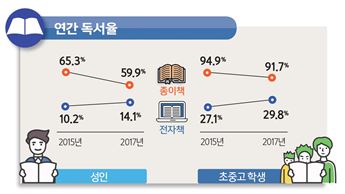 [시사뉴스피플=김은정기자] 문화체육관광부(장관 도종환, 이하 문체부)는 만 19세 이상 성인 6천 명과 초등학생(4학년 이상) 및 중・고등학생 3천여 명을 대상으로 실시한 ‘2017년 국민독서실태조사’ 결과를 발표했다. ‘국민독서실태조사’는 독서문화진흥기본계획 수립 등 독서문화 정책의 기초자료로 활용된다.