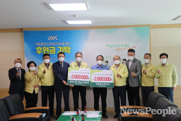 [시사뉴스피플=노동진 기자] 지난 10월 20일 광양시청 소회의실. 정현복 광양시장은 진심에서 우러나온 “고맙습니다”를 연신 외쳤다. 전국 지자체에서 최초로 설립된 (재)광양시어린이보육재단을 위한 후원이 연일 이어지고 있기 때문이다. 이날은 광양시청 금당고동문회(회장 최연송)와 재광충남향우회(회장 염복균)의 따뜻한 손길이 함께했다.