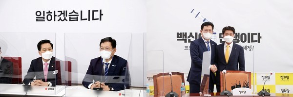 이날 송 대표는 코로나 재난 시대를 언급하며 이같이 밝히면서, 서로 소통을 통해 개혁 문제를 풀어가자고 제안했다. 특히 “코로나 때문에 너무 힘들어하시는 국민들에게 여러 가지 민생대책을 여야가 머리를 맞대고 잘 해결하자”고 덧붙였다.