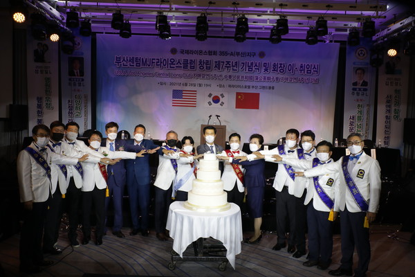 [시사뉴스피플=노동진 기자] 국제라이온스협회 355-A(부산)지구 센텀MJF라이온스클럽이 지난 6월 28일 부산 파라다이스호텔 그랜드볼룸에서 ‘창립 제7주년 기념식과 회장 이·취임식’을 가졌다. 이 자리를 축하하기 위해 배중효 직전총재와 전기도 당선지구 제1부총재, 김선호 LCIF캠페인 지역대표 등 다수의 지구 임원과 센텀MJF라이온스클럽 김윤진 초대회장을 비롯한 전임 회장과 회원 등 200여명이 참석했다.