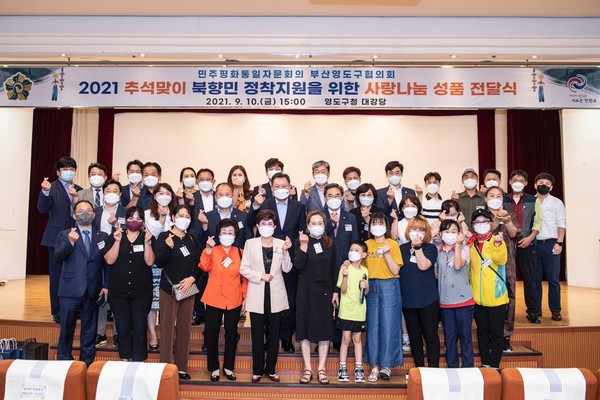 이의 일환으로 지난 9월 10일 영도구청 대강당에서 북한이탈주민 30세대에 추석 명절을 맞아 온누리 상품권 및 생필품 등 400만원 상당의 성품을 전달하고 격려했다.