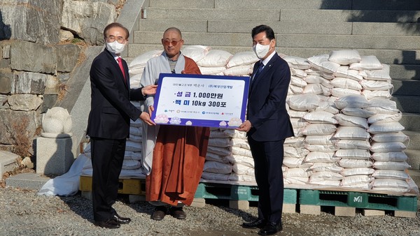 백운사 주지 법진스님은 “작년에 이어 올해도 백운사가 준비한 신축년 연말 이웃나눔 사랑의 쌀 전달식을 지원해 주시고, 의왕시를 위해 매년 나눔과 봉사를 실천하시는 복성산업개발의 임직원들께 고마움을 표한다”고 말했다.