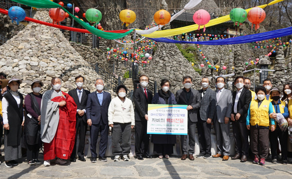 ㈜복성산업개발이 지난 9일 마이산 탑사(전북 진안군 소재, 주지 진성 스님)를 방문해 ‘자비의 쌀’ 10Kg 300포를 전춘성 진안군수에게 전달하며, 또 한 번 ‘더불어 함께 사는 사회’의 모습을 실천했다.