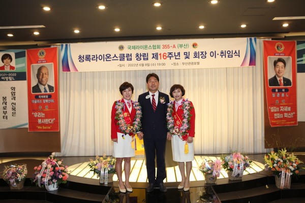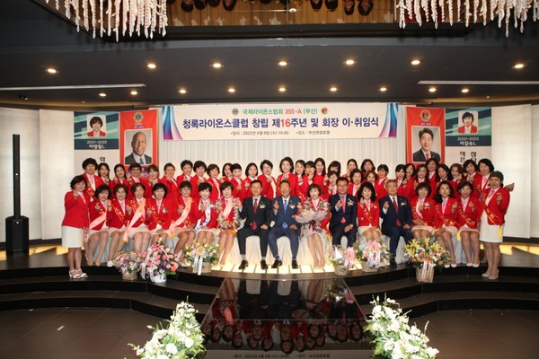 [시사뉴스피플=노동진 기자] 국제라이온스협회 355-A(부산)지구 부산청록라이온스클럽이 지난 6월 8일 부산관광호텔에서 창립 제16주년 기념식 및 회장 이취임식을 개최했다. 청록라이온스클럽은 2006년 7월 11일 연제라이온스클럽을 스폰서로 초대회장 박순옥 및 35명의 회원과 함께 창립, 현재 회원 수 65명이다. 이날 신임회장으로 취임한 ㈜스카이블루에셋 이갑숙 팀장은 “봉사에 대한 열정이 가득한 청록클럽의 수장을 맡게 된 것이 자랑스럽다”며 “선배 라이온이 갈고 닦은 업적을 더해 더욱 다채로운 봉사활동이 이뤄질 수 있도록 최선을 다하겠다”고 전했다.