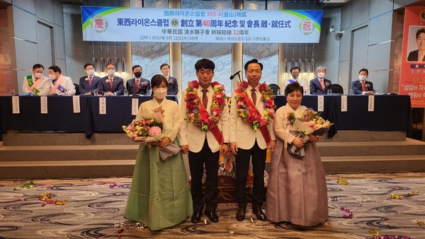 [시사뉴스피플=박용준 기자] 국제라이온스협회 355-A(부산)지구 부산동서라이온스클럽이 지난 5월 12일 부산 코모도호텔에서 창립 제40주년 기념식 및 회장 이취임식을 개최했다. 동서라이온스클럽은 1981년 10월 1일 아세아라이온스클럽을 스폰서로 초대회장 한경식 및 19명의 회원과 함께 창립, 현재 회원 수 35명이다. 신임회장으로 취임한 금산기업 오동일 대표는 회장지침을 ‘소중한 인연, 행복한 봉사!’로 정하고 다채로운 봉사활동을 펼칠 것을 예고했다.