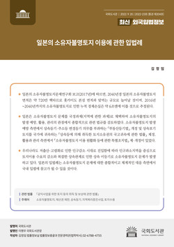 [시사뉴스피플=노동진 기자] 국회도서관(관장 이명우)이 20일 ‘일본의 소유자불명토지 이용에 관한 입법례’를 소개한 ‘최신외국입법정보’(2022-23호, 통권 제204호)를 발간했다.