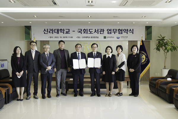 [시사뉴스피플=노동진 기자] 국회도서관(관장 이명우)이 20일 11시 신라대학교 총장접견실에서 신라대학교(총장 김충석)와 국가학술정보 공유 및 지식문화의 지역균형발전을 위한 업무협약을 체결했다.