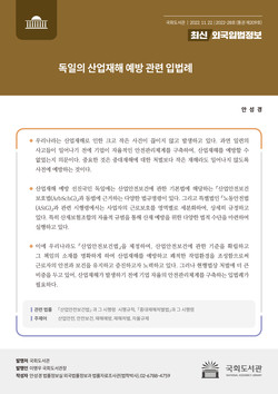 [시사뉴스피플=노동진 기자] 국회도서관(관장 이명우)이 22일 ‘독일의 산업재해 예방 관련 입법례’를 소개한 ‘최신외국입법정보’(2022-28호, 통권 제209호)를 발간했다.