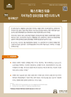 이에 각국 정부는 섬유패션 부문의 지속가능성을 강제하기 위한 노력을 시작하고 있다. 대표적으로 유럽연합은 ‘EU 섬유전략’과 전략의 이행을 위한 지식·혁신 축적 프로젝트를 시작해 많은 시사점을 던지고 있다.