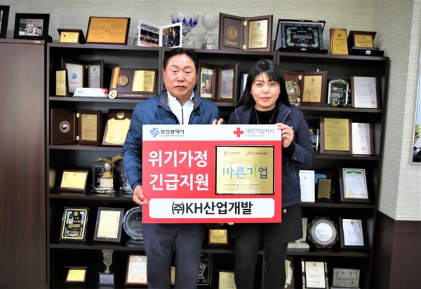 [시사뉴스피플=박용준 기자] 나눔을 실천하는 기업, ㈜KH산업개발이 최근 대한적십자사 부산지사 ‘씀씀이가 바른기업’ 정기후원 캠페인에 참여했다.
