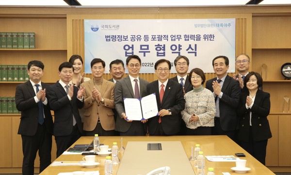 [시사뉴스피플=노동진 기자] 국회도서관(관장 이명우)이 20일 법무법인 대륙아주(대표변호사 이규철)와 업무협약을 맺고 법률관련 교류‧협력을 도모하기로 했다.