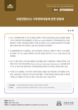 이번 호에서는 ‘유럽기후법’의 기후중립목표와 중간기후목표뿐만 아니라 유럽과학자문기구, 기후변화적응전략과 탄소감축 입법안 패키지인 ‘Fit for 55’의 도입 배경 및 주요 내용을 소개했다.