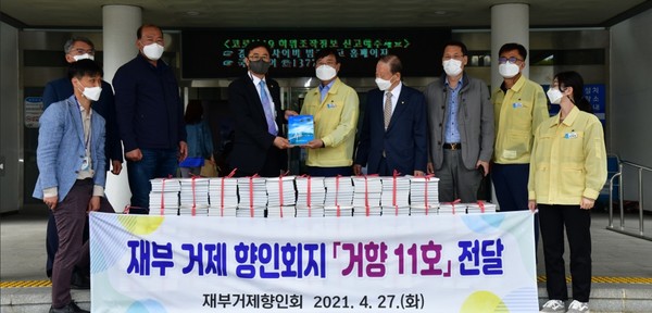 1980년에 발족, 40년이 념는 역사를 자랑하는 재부거제향인회는 2021년 향인회지 ‘거향 제11호’를 창간 40주년 특집으로 발간해 큰 화제를 불러모았다. ‘거향’은 5년 주기로 발간하는 회지로, 1981년 처음 발간해 어느덧 40주년을 맞이했다. ‘거향 제11호’는 거제의 기본현황과 관광명소, 향인회 주요활동, 임원 소개 등을 담고 있으며, 500권을 거제시에 전달했다. 전달된 회지는 거제시를 통해 면·동 주민센터와 각급 학교, 공공기관 등에 배부됐다.