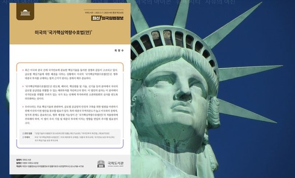 [시사뉴스피플=노동진 기자] 국회도서관(관장 이명우)이 7일 ‘미국의 ‘국가핵심역량수호법(안)’‘을 소개한 ’최신외국입법정보‘(2023-4호, 통권 제216호)를 발간했다.