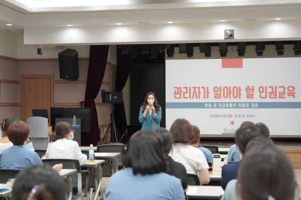 이날 교육은 양윤전 한국양성평등교육진흥원 전문강사가 ‘관리자가 알아야 할 인권교육’을 주제로 병원 내 인권침해의 이해, 인권침해 예방과 대응 그리고 관련 법률과 제도, 관리자의 역할과 대응 방안 등이다.
