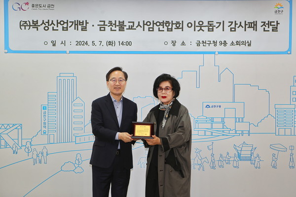 유성훈 금천구청장은 “어려운 경제 상황으로 다른 어느 때보다 힘들게 생활하고 있는 취약계층에 나눔을 실천해 주신 복성산업개발과 금천불교사암연합회께 감사의 뜻을 표한다”며 “앞으로도 지속적인 사회공헌활동을 부탁드린다”고 말했다.