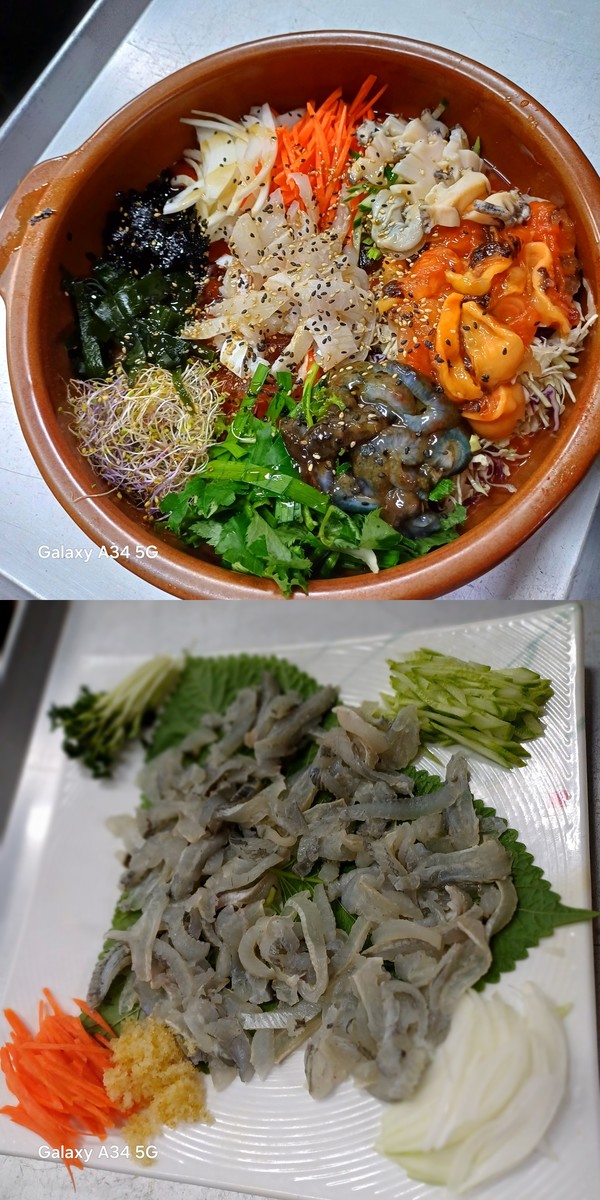 입안에서 느끼는 이 탱탱함 어쩔~~회가 싱싱하고 두툼하게 썬 회가 아주 고소한 맛이 나고 씹는 맛이 어떤 횟집에서 느껴 보지 못 한 쫄깃한 식감 이였다.