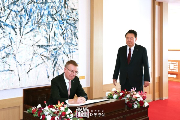 [시사뉴스피플=박일봉 기자] 윤석열 대통령은 오늘(11. 28, 목) 한국을 실무 방문 중인 「에드가르스 린케비치스(Edgars Rink?vi?s)」 라트비아 대통령과 정상회담을 갖고, 양국 간 협력 증진 방안과 지역 및 국제정세에 대해 폭넓게 의견을 교환했다.