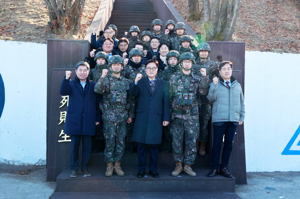 [시사뉴스피플=박일봉 대 기자] 우원식 국회의장은 연말을 맞아 18일 육군 3사단 백골부대 전방 관측소(OP)를 방문하여 지형 및 경계작전현황 등을 보고받고 수색대대 부대원들과 오찬 간담회를 함께했다.