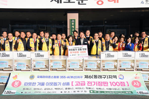 장준용 동래구청장은 “모두가 어려운 시기에 지역 주민 돌봄과 나눔에 관심을 가져주시는 국제라이온스협회355-A지구 제6지역 라이온스클럽에 진심으로 감사드린다”며 “겨울철 온기가 필요한 우리 구민 모두가 안전하고 따뜻한 겨울을 보낼 수 있도록 노력하겠다”고 전했다.