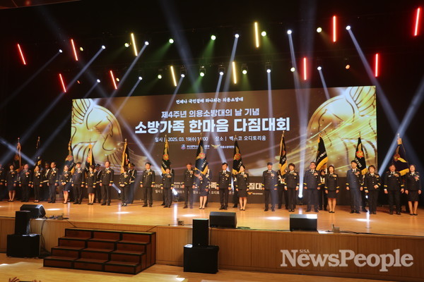 [시사뉴스피플=박용준 기자] 지난 3월 19일 부산 벡스코가 들썩였다. 화제의 주인공은 부산의용소방대다. 이날 부산의용소방대연합회(연합회장 유성재, 이현주)와 부산소방재난본부(본부장 김조일)는 제4주년 의용소방대의 날 기념 ‘소방가족 한마음 다짐대회’를 개최, 수천명의 인파가 몰렸다. 벡스코 오디토리움 4000석 규모를 가득 채운 현장은 뜨거운 열기로 가득했다.
