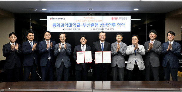 [시사뉴스피플=노동진 기자] BNK부산은행(은행장 방성빈)은 지난 18일 동의과학대학교 대회의실에서 동의과학대학교(총장 김영도)와 ‘지역과 대학의 동반성장을 위한 상생 업무협약’을 체결했다고 21일 밝혔다.