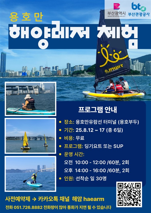 이번 프로그램은 해양레저 콘텐츠를 통해 용호만유람선터미널 운영 활성화와 도심형 해양관광 저변 확대를 목표로 한다.