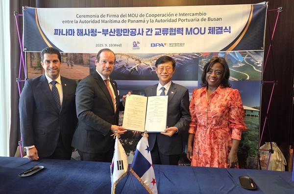 [시사뉴스피플=노동진 기자] 부산항만공사(BPA, 사장 송상근)는 파나마해사청(AMP)과 서울 그랜드 머큐어 앰배서더 호텔에서 교류 협력 강화를 위한 MOU를 체결했다고 10일 밝혔다.