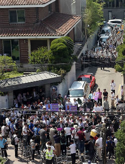 ‘5ㆍ18 역사왜곡 저지 국민행동(국민행동)’은 지난 6월 10일 오후 서울 연희동 전두환 전 대통령 자택 앞에서 기자회견을 열고 “전두환 일가의 재산을 환수하라”고 촉구했다. 상경투쟁에는 5ㆍ18 단체와 광주 및 전남 진보연대, 광주 시민단체협의회, 광주전남여성단체연합 회원 등 160여 명이 참여했다. 국민행동은“전두환 일가는 수천억 원의 재산을 가져다 놓고도 추징금을 내지 않고 있다”며 “전두환은 추징금을 납부하고 국민에게 사죄하라”고 비난했다. 문경식 전남진보연대 상임대표는 “전 재산이 29만원 밖에 없다는 전두환이 엄청난 재산을 해외에 도피시켜 놓고 있다고 한다”며 “특별법을 만들어서라도 부정부패로 축재한 재산을 반드시 환수하고 역사를 바로잡아야 한다”고 강조했다. 이날 국민행동은 전 전 대통령의 자택 바로 앞까지 가서 항의 입장을 전달한다는 계획이었지만 경찰이 출입을 통제하면서 대치 상황이 벌어졌다. 국민행동은 또 이날 오후 서울 세종로 동아일보와 조선일보 사옥 앞에서 달걀 등을 투척하며 종편의 5·18 관련 왜곡 방송을 규탄하는 상경 투쟁을 벌이기도 했다. 한편 ‘전두환 풍자 포스터’를 붙여 경범죄처벌법 위반 혐의로 재판을 받고 있는 팝아티스트 이하씨가 다음 달 전두환 전 대통령을 주제로 한 전시회‘왜 나만 갖고 그래’를 연다. 전시회의 부제는 ‘전두환 전 대통령 추징금 환수 촉구를 위한 특별전’이다. 이 씨는 지난해 5월 서울 연희동 전 전 대통령 집 인근 골목에 전 전 대통령이 29만 원짜리 수표를 들고 있는 모습의 포스터 50여장을 붙이다 경찰에 연행됐다. 약식기소로 벌금 10만원을 부과 받은 이하씨는 유죄를 인정할 수 없다며 정식 재판을 청구해 13일 오후 4차 공판이 열렸다. 내달 말 열릴 예정인 ‘왜 나만 갖고 그래’ 전시회에는 전 전 대통령이 광주민주화운동을 배경으로 ‘진심어린 사과’ 라고 쓰인 사과박스를 들고 있는 그림, 피노키오와 전 전 대통령의 얼굴을 합성한‘전노키오’그림 등이 전시된다. 이 씨는 국내 언론과의 인터뷰에서 “전 전 대통령 풍자 포스터 300장을 붙이러 광주에 내려갔는데, 사람들이 너도나도 포스터를 달라고 해서 다 나눠주는 바람에 한 장도 붙이지 못하고 올라왔다”며 “당시 포스터를 들고 ‘인증샷’ 을 찍은 여고생 등 시민들 모습을 리터치한 작품도 전시할 계획”이라고 밝혔다. 이하씨는 전시회 수익금 전액을 민주사회를위한변호사모임과 뉴스타파에 기부할 예정이다.