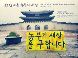 매주 토ㆍ일요일 광화문광장 등 도심 곳곳에서 전국의 농수특산물을 저렴하게 사고, 농업에 대한 체험ㆍ가치도 함께 할 수 있는 ‘2013 서울 농부의 시장’ (Seoul Farmers Market)을 만날 수 있다. 서울시는 지방생산자와 도시소비자가 직접 만나고, 도시농업 관련 각종 체험ㆍ문화행사가 어우러진 ‘2013 서울시 농부의 시장-도심공원’ 을 4.20(토) 북서울 꿈의 숲을 시작으로 11.10(일)까지 매주 토ㆍ일요일(10시~17시) 개장 중에 있다. 서울시‘농부의 시장’은 도심의 공공장소에 장터를 열어 시ㆍ도 추천 농수특산물과 서울 근교 도시농부들이 생산한 농산물의 직거래를 통해 우리 농업과 농산물에 대한 가치를 일깨우고 도ㆍ농 상생의 계기를 마련하기 위한 것으로, 지난해 6월부터 11월까지 매주 토요일‘광화문 시민 열린마당’에서 개최된 바 있다. 지난해 광화문 시민열린마당 1곳에서만 운영됐던 서울시 농부의 시장이 올해는 12곳으로 확대(도심공원 3개소, 한강공원 9개소)하여 운영되며, 한강공원 농부의 시장은 지난 4.12(금) 여의도를 시작으로 개장ㆍ운영 중이다. 서울시는 농부의 시장을 통해 지방의 농부들에게는 정기적인 판매 기회를 주고, 도시의 소비자들에게는 값싸고 싱싱하면서도 믿을 수 있는 농산물을 구입할 수 있는 기회를 제공할 것으로 기대하고 있다. 도심공원 농부의 시장에선 ▲지자체에서 추천한 생산농민 및 단체의 직거래장터 ▲도시농부의 판매장터 ▲초청 생산자 부스 ▲바른 먹을거리 캠페인 ▲농부스타일 사회적 경제 부스 ▲각종 문화행사 등 다양한 볼거리, 즐길 거리가 전개된다.