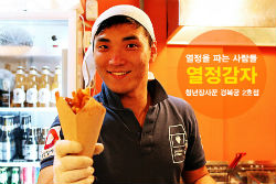 공덕역에는 ‘늘장’ 말고 특별한 곳이 한군데 더 있다. 공덕역 뒤편에 있는 재래시장 초입 2층에 위치한 감자튀김 전문점‘열정감자’이다. 불타는 금요일, 황금 주말이 아닌 평일임에도 어스름한 저녁 2층으로 올라가는 계단에서 직원에게 이미 만원이라는 기운 빠지는 전갈을 들을 수 있었다. 20여분의 대기 시간이 주어졌다. 일행과 재래시장과 먹자골목이 형성된 공덕역 뒤편을 발길이 닫는 대로 거닐다 직원의 친절한 전화를 받은 후 다시 가게를 찾았다. ‘잘 생겨서 죄송합니다, 크게 될 놈 뭘 해도 될 놈, 감자 살래 나랑 살래, 손님이 짜다면 짠 거임’ 등 위트 넘치는 문구가 적힌 직원들의 유니폼을 구경하며 자리에 앉아 이곳의 메인 메뉴인 감자튀김과 크림 맥주를 주문했다. 훈남들의 활기 넘치는 분위기가 생기 있어 보이지만 이곳은 단순히 외모로 호객행위를 하는 여느 가게와는 사정이 다르다. 이곳 열정감자는‘청년 장사꾼’이라는 사회적 기업이 운영하는 매장이다. 시장문화기획자였던 김연석 대표와 총각네 야채가게 최연소 점장 출신인 김윤규 대표 등 20대 청년 다섯이 만든 기업 ‘청년장사꾼’ 은 ‘문화를 접목한 장사’ ‘스펙이 아닌 경험쌓기’ 에 주목하고 사업을 시작했다. 장사를 하면서 ‘주변에 도움이 되자’ 는 초심을 잃지 않기 위해 시장 골목을 지나는 누구에게나 씩씩하게 인사를 하는 한편 독산동 남문시장에서 ‘시장을 털어라 캐시몹’ 행사를 진행했고, 겨울엔 새벽 4시까지 상가 주변의 눈을 치우며 인근 가게들의 난로 연통까지 갈았다고 한다. 이들이 작년 10월 금천교시장에 차린 ‘감자튀김+크림맥주’전문‘열정감자’ 가 대박을 친 이후 이곳 공덕역 까지 점포를 확장할 수 있었고 청년장사꾼은 상행위와 문화의 결합으로 시너지 효과를 만들어 내고자 열혈 청년 25명이 뜻을 합친 사회단체로 자리매김했다. 청년 장사꾼이 운영하는 점포는 이태원의 카페와 열정감자 각 점포와 열정 꼬치 등인데 어느 가게하나 무색무취 한 곳은 없다. 이태원 카페는 청년장사꾼 멤버를 포함해 지역 주민들이 모여 지역 프로젝트를 진행하는 네트워킹 공간으로 자리 잡았다. 청년장사꾼 4명이 공동 운영하는 열정감자는 입소문이 나며 월 매출 4000만원을 올리는 가게가 됐다. 최근엔 4호점 계약을 마쳤다는 후문이다. ‘청년 장사꾼’ 은 여느 청년들이 목적하는 것처럼 행복 추구라는 삶의 목적은 동일하나 그들은 과정에 있어서 ‘어떻게’ 라는 수단에 큰 비중을 둔다. 개인적으로는 즐겁게 돈을 벌고 사회적으로는 청년 창업을 지원함으로써 그들의 자립을 돕고, 지역 상권에 이바지하는 등 지역 활성화 방안에도 기여하고 있다. 그래서 이들 ‘청년장사꾼’ 의 인턴 프로그램 공고는 또 다른 뭔가가 있다. 아르바이트나 인턴으로는 실물경제를 체험하기 어려운 상황에서 청년장사꾼 채용 과정인 ‘2주 장사 체험 프로젝트’ 는 한 마디로 청년장사꾼과 함께 2주 동안 먹고 자며 장사를 체험할 수 있는 프로그램이다. 인턴들은 2주 동안 휴일 없이 매장관리, 서비스, 재고관리, 발주, 재료 구매 등 장사의 기본적인 프로세스를 배운다. 이들 가운데 정식 멤버로 채용된 이들도 많다고 한다. 이제범 카카오 대표, 박칼린 한국예술원 교수, 남민우 다산네트웍스 대표와 어깨를 나란히 하며 청와대가 발표한 대통령 직속 청년위원회 19인 중 한 명이 된‘청년 장사꾼’의김윤규 대표는 국내 언론과의 인터뷰에서 가게만의 특별한 무언가에 대한 질문에 “특별하다. 문화 사업을 접목한 장사도 가능하다, 전통시장 끄트머리 상권에서도 대박 가게를 만들 수 있다, 영세가게로도 골목상권 살리고 고용 창출할 수 있다는 점을 증명해냈으니까 다음은 2층 상권도 잘될 수 있다는 걸 보여줄 계획이다”라며 다부진 포부를 밝혔다. 청년장사꾼이 알려지며 김 대표에게 창업이나 진로에 대해 문의하는 학생, 청년들이 부쩍 늘었다고 한다. 김 대표가 이들에게 해주는 말은 늘 “치열하게 살아보라. 우린 젊다, 돌다리도 두들겨 보고 건널 나이가 아니다. 건너다가 발이 빠지면 또 어떠랴, 한창 여름인데 금방 마를 것이다”이다. 맛있는 감자튀김과 크림 맥주는 가격적으로 큰 부담이 없었고 활기 넘치는 직원들의 열정으로 하루의 고된 일정으로 방전된 기자의 체력도 한껏 충전된 기분이었다.