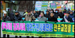 기독교계, 시국기도회와 금식기도까지 지난 12월 16일 기독교계가 박근혜 대통령 당선 1주년을 사흘 앞두고 18대 대선을 부정선거로 규정하는 기도회를 일제히 열었다. 한국기독교장로회 총회, 전국목회자정의평화협의회(목정평), 한국기독교교회협의회(NCCK) 정의평화위원회, 개신교 평신도 시국대책위원회 등은 대통령 사퇴와 진상규명을 촉구했다. 한국기독교장로회 총회는 이날 서울 명동 향린교회에서 시국기도회를 열고 “대한민국 제18대 대통령 선거는 원천 무효”라고 주장했다. 천주교 정의구현사제단 등 종단 내 단체가 시국미사ㆍ기도회를 열거나, 대한불교조계종 승려들이 시국선언을 한 적은 있다. 그러나 교단 전체가 공식 시국기도회를 연 것은 이번이 처음이다. 시국기도회에는 목사와 신도 500여명이 참가했다. 이들은 시국선언문에서 “4ㆍ19혁명의 단초가 된 1960년 3ㆍ15 부정선거와 박정희 정권 때의 부정선거 같은 비극을 겪은 우리가 다시 부정선거를 규탄해야 하는 현실 앞에 참담함을 금할 수 없다”며 “진실을 은폐하기 위한 불의한 탄압으로 국민들의 저항에 부딪혀 비참한 말로를 맞지 않도록 스스로 책임질 것을 촉구한다”고 주장했다. 기독교계는 시국기도회를 마친 후 향린교회에서 대한문까지 십자가를 등에 맨 채 1.2km를 행진해‘NCCK 정의평화위원회’가 주최하는 시국기도회에 동참했다. 이날 모인 헌금은 국가기관선거개입 진실규명 활동에 쓸 예정이라고 밝혔다. 이에 앞서‘목정평’은 이날 오전 서울 연지동 한국기독교회관에서 ‘공안몰이 중단, 대통령 퇴진’기자회견을 열고 성탄절까지 금식기도회를 열었다. 임광빈 목사는 “부정선거 의혹에 대한 진상규명은 커녕 오히려 진상규명을 촉구하는 이들을 종북으로 매도하는 정부를 보며 더는 기대를 가질 수 없게 됐다”며 “특검마저 의미가 없어진 지금 박 대통령이 국민들에게 사과하고 퇴진했으면 한다”고 피력했다. 의장단 대표 등 5명은 이날부터, 나머지 회원들은 하루씩 금식기도를 시작했다. 당시 기도회에는 대구경북기독인연대도 동참한 것으로 전해졌다. 종교계의 정부 규탄 움직임이 거세지는 현상에 대해 전문가들은 정부의 부적절한 대응이 상황을 악화시키고 있다고 진단했다. 성태용 건국대 철학과 교수는 “종교계의 시국선언은 위기상황을 직시하고 제 역할을 한 것인데 이마저 색깔 논쟁으로 몰아간 정부와 정치권의 부적절한 행동이 오히려 문제를 키웠다”고 평가했다. 조희연 성공회대 사회학과 교수는 “정부가 천주교계의 발언을 탄압한 것이 역설적으로 기독교계까지 불을 지핀 것”이라며 “이같은 분노가 다른 종교나 시민사회 전체로 확산될 가능성이 높다”고 전망했다. 하루빨리 정부와 종교계의 타협점을 찾길 바라는 바이다. <NP>