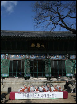 대한불교조계종 퇴휴 스님이 지난 11월 28일 오전 종로구 견지동 조계사에서 국가기관의 불법선거개입 관련자 처벌과 박근혜 정부의 대국민 사과 등을 촉구하는 시국선언에 천주교와 기독교에 이어 동참했다. 박근혜 정권의 종교인들에 대한 ‘종북몰이’공안정치를 비판하고, 박근혜 정부의 참회와 민주주의 수호의 염원을 담은 이번 시국선언에는 대한불교조계종 승려 1012인이 참여했다. 조계종 소속 승려 1012인은 시국선언문에서 “대통령 선거에서 국가 권력기관이 조직적으로 동원돼 민의를 왜곡한 사건과 이 사건의 수사에 정권이 개입하는 것을 보면서 민주주의의 시계가 거꾸로 가는 극한 절망을 경험하고 있다”며 “현 사태를 민주주의 기본질서를 무너뜨린 심각한 헌정질서 파괴로 규정한다”고 밝혔다. 이들은 “박근혜 정부는 국가조직이 대선에 불법 개입해 민의를 왜곡하는 현 상황이 과연 민주주의인지, 민생을 외면하고 극단적 이념갈등을 조장하는 모습이 정부 출범 당시 주창했던 국민대통합인지 분명히 밝혀야 한다”고 요구하고 나섰다. 조계종 소속 승려 1012인은 “부처님은 지도자의 열 가지 덕목 중 마지막으로 불상위(不