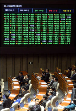여아가 지난 12월 31일 자정을 넘기고 1월 1일 새벽 3시 50분, 본회의를 열고 2014년 예산안을 48시간 설전 끝에 극적으로 통과시켰다. 12월 30일 아침만 해도 사상 초유의 ‘준(準)예산’우려가 제기될 정도로 암울한 상황이었다. 얽히고 설켰던 여야 관계를 푼 계기가 된 것은 모순되게도 ‘철도노조 사태’였다. 그러나 12월 31일까지 예산안을 통과시켜야 했지만 이른바 외국인투자촉진법(외촉법) 개정안을 민주당 의원들이 강력하게 반대하면서 모든 의사일정이 미뤄지는 진통을 겪기도 했다.